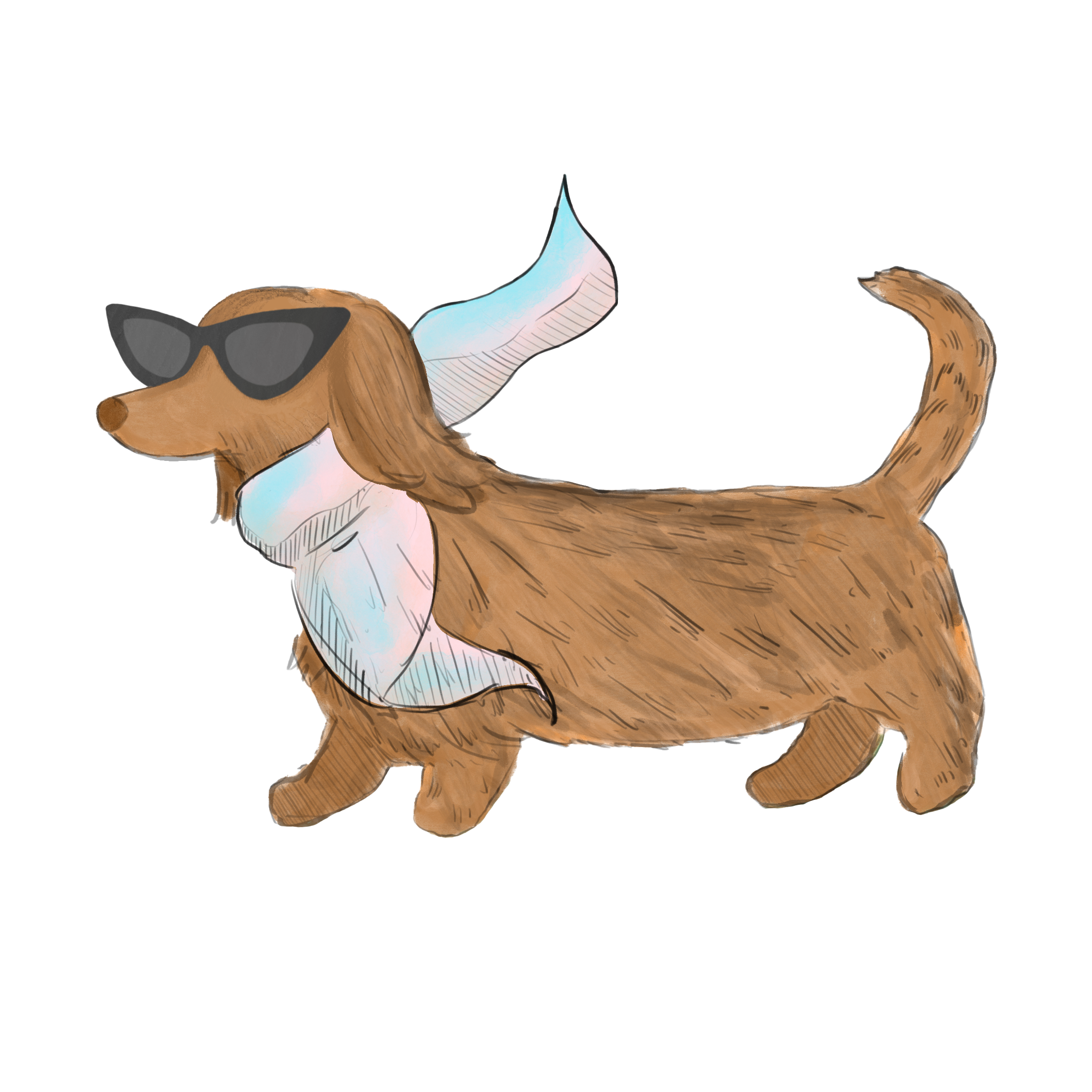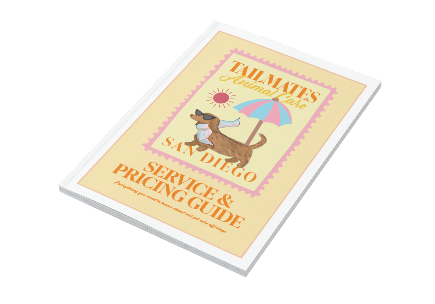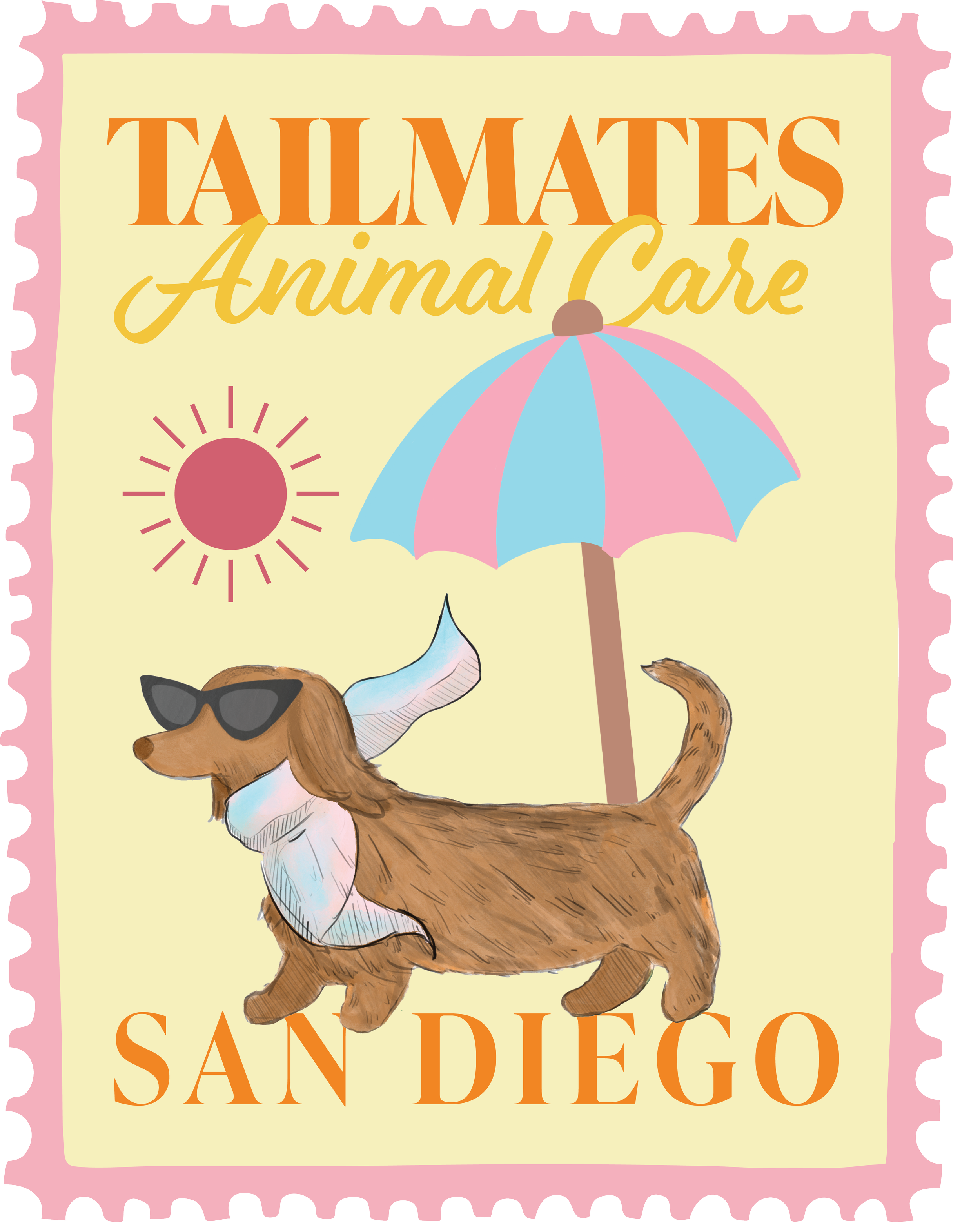 The illustration style is central to expressing the brand’s whimsical and personality-driven identity. The hand-drawn umbrella adds a subtle coastal reference, reinforcing the relaxed, sun-soaked “pet staycation” feel, while also bringing in a slightly retro, playful charm. The illustrated dog, commissioned by Charlie Clark captures the heart of the brand, combining humor, warmth, and style through its expressive and slightly exaggerated features.