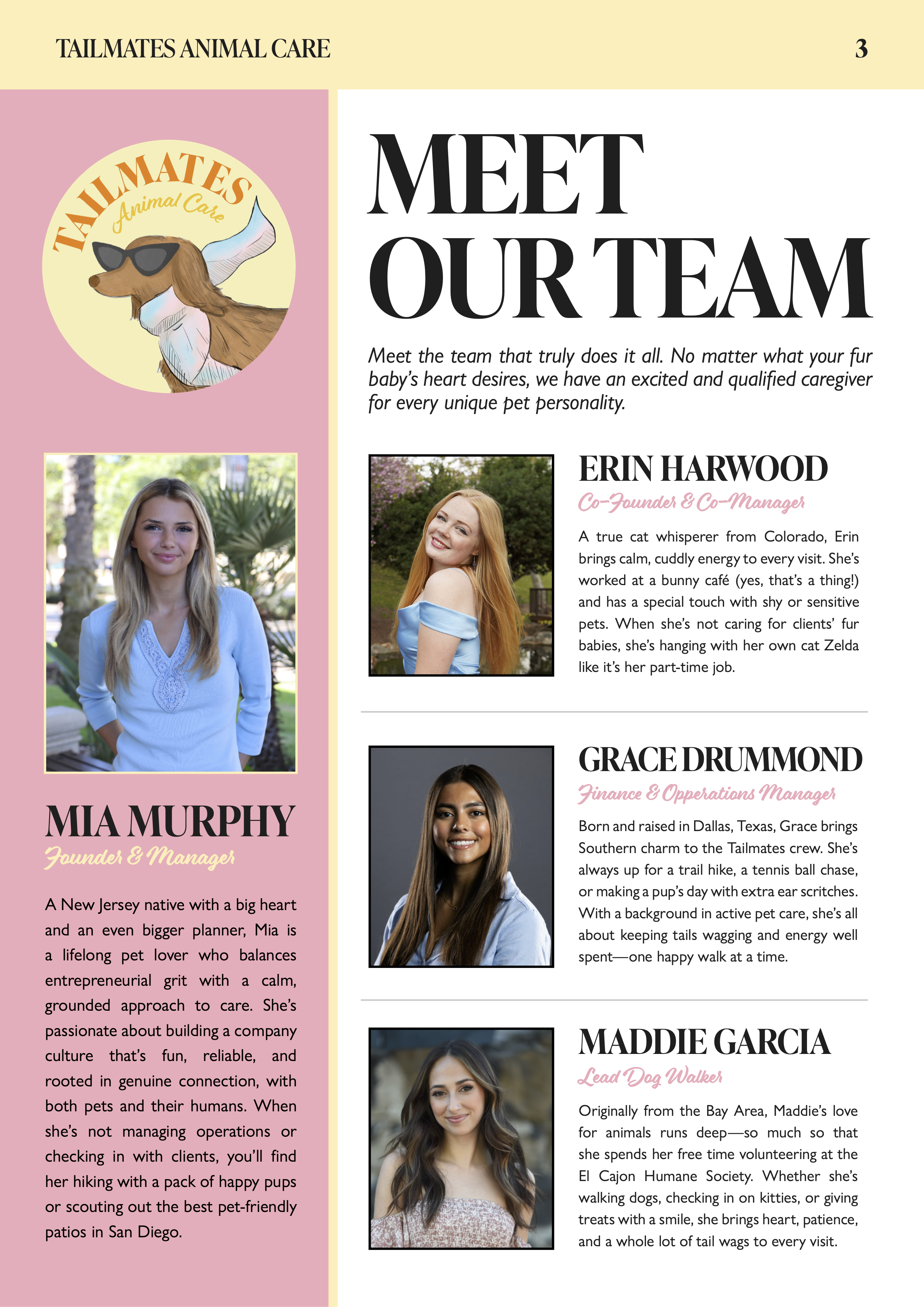 Brand Identity / Marketing Design / Founder & Creative LeadThis adventure began as a small dog-sitting service I started in high school in New Jersey. What began as neighborhood pet sitting quickly grew into a fully insured LLC with over 100 clients and a small team of five employees. When I moved to San Diego for college, I left the original business behind.